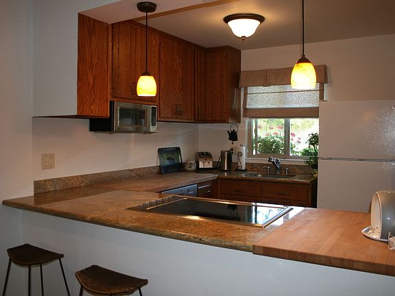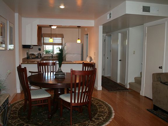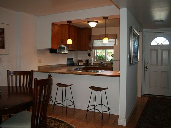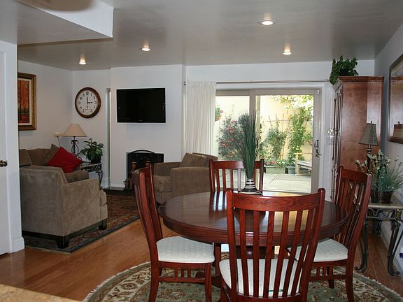 Stylishly appointed 2 bedroom, 1-1/2 bath home, with contemporary open floor plan on the main level, in-unit laundry room, beautifully landscaped patio, and detached 2 car garage. Kitchen includes solid surface & butcher block countertops, a Fisher & Paykel Schott Ceran cooktop, Bosch S/S dishwasher, and built-in microwave. Homeowner's amenities include a community pool. This home is move-in ready and a great value!