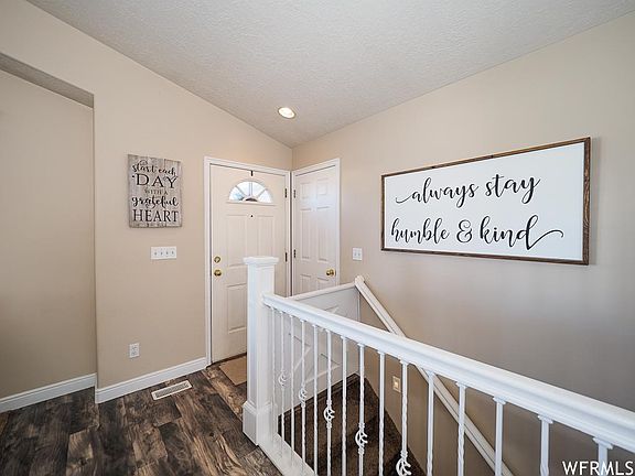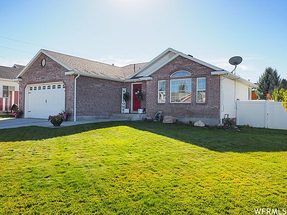 **MULTIPLE OFFERS RECEIVED< HIGHEST AND BEST DUE BY MONDAY 10/19 AT 5PM** A real gem in a quiet, tidy neighborhood where pride of ownership really shows. This property's red brick, architectural windows, trim front lawn, and a carriage house garage door translate to splendid curb appeal. A gorgeous rambler that shows beautifully, so pristine it feels brand new. The open concept main level with richly-toned laminate flooring and vaulted ceiling is bright and airy and a perfect place for gatherings around an elegant gas fireplace with stacked marble tile surround, custom mantelpiece and ceiling high over mantle, perfect for mounting your big screened TV. The living space flows into the dining area with a beautiful new sliding door to the patio, and the sparkling, updated kitchen with bright white, raised panel door cabinets, granite countertops, designer tile backsplash, stainless steel appliances, recessed lighting, and a center island with seating. Also on this level, a generously sized main bedroom with large, custom filled walk in closet, a secondary bedroom, a tastefully updated bath with granite top vanity and a handsomely tiled tub shower, and a convenient laundry room. Downstairs, a huge family room with lots of recessed lighting, ideal for entertaining and family recreation, a bedroom, an additional updated bath including a spacious dual head shower. When the weather is fine, head outdoors to the expansive, private, fully fenced back yard, complete with concrete patio, lush green lawn, storage shed and fruit tree. Added bonus: new furnace, A/C unit and hot water heater. Conveniently located minutes from schools, shopping, golf courses, Clinton City Recreation/Civic Center Park, Veteran's Park, the Rail Trail Walking Path and I-15. This is a turn-key home, ready for it's new owners to enjoy.