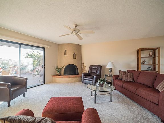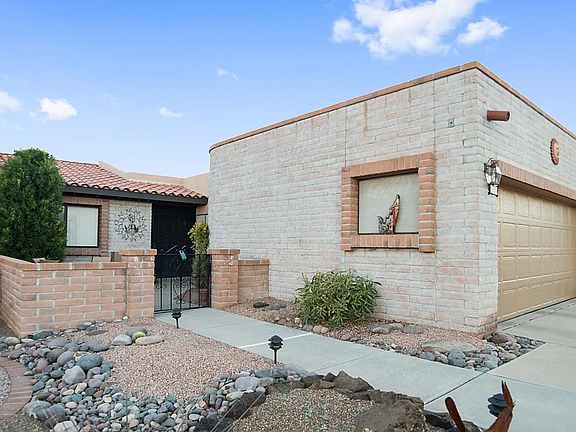 One year lease available on this unfurnished townhome in the convenient central location of Encanto Estates. It offers exceptional beautiful unobstructed views of the Santa Rita Mountains. The perfect size home with 1566 square feet - 2 bedrooms, 2 baths and 2 car garage with storage cabinets. The kitchen has an abundance of cabinets, center prep island and eating area with views of the front courtyard. The built in desk area adds convenience to keeping you organized and on top of your computer work. The living room is filled with natural light with skylights and is complete with a gas beehive fireplace. Wonderful outdoor living with a full length covered patio extending onto a brick paver patio. Very private setting with natural desert arroyo behind the home and panoramic mountain and desert arroyo views! Note: Photos show furnishings from prior occupant - Home is being offered Unfurnished. Unfurnished Townhouse; One year lease; Tenant pays for all utilities; GVR access if desired. No smoking or pets please.
