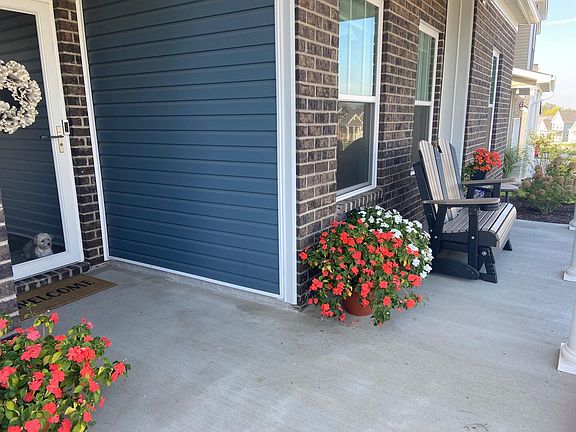 Back-Up Offers are being accepted. Beautiful ranch home (Barbara model), better than new and meticulously maintained. 3 bedroom, 2 full bath with an inviting front porch that has no steps as you enter the front door. Upgrades include storm doors on front and back with a stone fireplace (gas), upgraded appliances and custom blinds throughout with glass doors on the primary shower. Outside are custom steps onto the extended patio, with multiple trees and added stone edged gravel beds around the ac unit and exterior faucet area. Fenced back yard has gates on both sides.