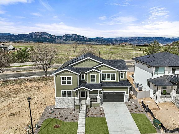 Step into luxury living in this stunning home, perched among the highest points in the neighborhood, offering breathtaking panoramic views of the Flatirons, Longs Peak, & the Rocky Mntns! Nestled here is a new construction home amidst outdoor enthusiasts' havens, including the Davidson Mesa Trailhead, Harper Lake, and Leon A Wurl Wildlife Sanctuary. This home boasts 5 BR's and 4.5 BA's, perfect for those seeking a home that embodies luxury, functionality, and environmental responsibility, all while soaking in the majestic beauty of the surrounding landscape.