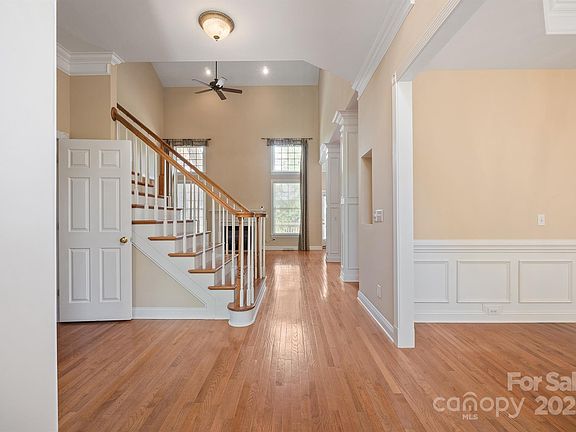 Luxury living! Beautiful 5 BDRM, 4 ½ bath home in the highly desired Skybrook Golf Club community in Cabarrus County. This full brick home has hardwood floors throughout, 1st floor primary bedroom w/ LG walk-in closet, en suite bathroom including soaking tub, dual sinks, separate shower and toilet room. Home boasts tons of natural light, vaulted living room w/gas fireplace, 2 family rooms, formal dining room with tray ceiling, study w/built in bookshelves, office/bonus room & large gourmet kitchen w/ island, breakfast nook & lots of storage. Finished basement includes high ceilings, separate BDRM/gym, & luxury spa like bathroom w/ jetted tub, dual sinks, separate shower & toilet room. The home boasts ample storage, Jack & Jill bath, workshop space, individual climate control per floor, & 3 car garage. This home is perfect for hosting guests w/ amazing outdoor living space, recently painted deck, walk-out patio, & large leveled backyard. Convenient to shopping & other amenities..
