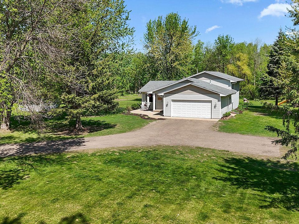 A blend of suburban convenience and rural tranquility, 4 bed/2 bath multi-level home w/ 2.8 acres on a corner lot with mature trees. Enjoy the front patio & back multi level deck . Beautifully updated open main floor w/new kitchen cabinets, countertops, backsplash, SS appliances, Pot-filler, glass washer, gather around this spacious kitchen island with granite countertop, maple hardwood floors, tons of storage. Roomy Dining room or a living room all on the main floor. Upstairs, find 3 bedrooms with vinyl plank flooring and new paint. Nice big primary bedroom is attached to the updated 3/4 bathroom. Pleasant lower-level family room with new carpet and daylight windows, 4th bedroom, and full bath. Unfinished basement with laundry and utilities and room for storage. So many updates, roof, furnace, water heater, water softener all replaced in 2019. Great big yard. Spacious garden shed and room for additional sheds or pole barns for the next buyer. Make this your home! Sellers related to agent
