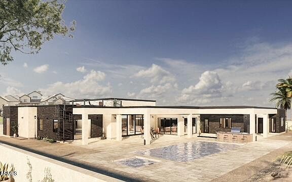 Gorgeous Brand-New Single Level Custom Home in Cactus Corridor. Estimated completion date end of March. Stunning 6153 sq. ft. modern home, 4 car garage, 5 large Bedrooms, 5.5 Bathrooms, plus an office that can be used as a 6th bedroom, attached casita that includes its own living quarters. All 5 bedrooms have their own bathrooms. Soaring ceilings, fantastic indoor outdoor open concept kitchen, family room, dining room with sliding glass doors from all rooms! Two kitchen islands, separate bar, two tall glass wine coolers, custom cabinets and tile throughout. Impressive Master Suite with incredible master bath! Large, covered patio with built-in BBQ and kitchen, resort pool, spa and outdoor firepit, plus an upper deck to capture the incredible AZ sunsets and mountain views! Make it yours