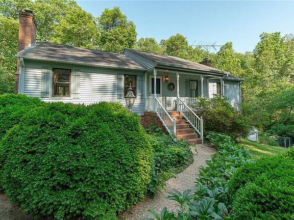 An oasis tucked away in Chesterfield, this rancher style home features 3 bedrooms, with a possible 4th! Upon walking in the door you are greeted by a bright foyer and to the left is a formal living room with cozy fireplace. The spacious kitchen is straight ahead with an island, spacious counter tops, and view of the back yard. Off the kitchen is a formal dining room with lots of natural light. There are also 2 generous bedrooms and a bathroom on this floor. The walk out basement is finished and could be used as an in-law suite. It has 1 bedroom with the possibility of a second. There's also a larger family room with cozy fireplace. Finished off with a kitchen complete with refrigerator and cook top. A cute patio is right outside for grilling and opens to a lovely private backyard. Tucked away on 2 acres. Don't forget to take a look at the stream that runs through the property.