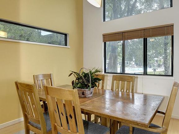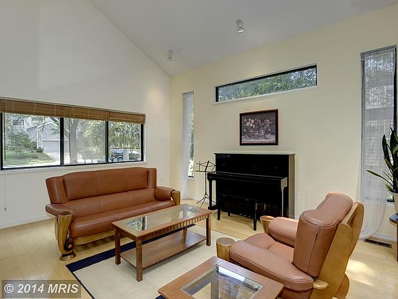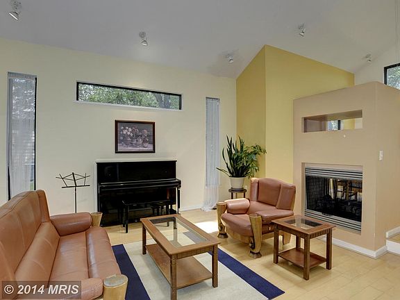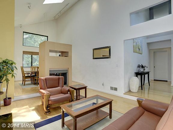 IMAGINE living in a beautiful contemporary home w/soaring ceilings &sun-drenched spaces. Uniquely design, open-concept ML w/gleaming hrdwds throughout. KIT offers abundance of counterspace, breakfast bar &access to deck. Adj FR w/skylights. Host dinner parties in combined LR/DR w/vaulted ceilings &dual sided FP. ML MBD w/built-ins &FBA. LL w/great storage space. Deck overlooks community pool!