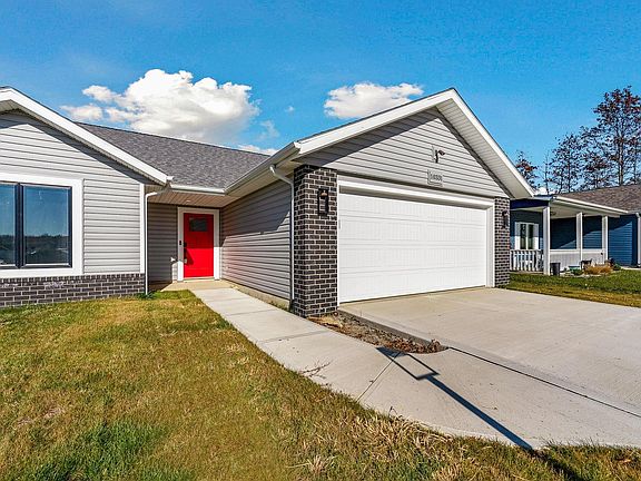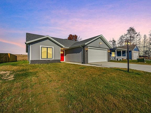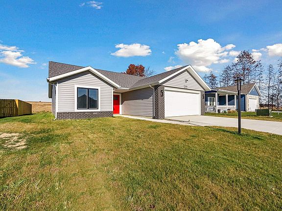 Welcome to the Lakes at Woodfield and this new construction Granite Ridge Cottagewood model that is ready for immediate possession! Located on the private end of Battle Run Way, this nearly 1400 square foot home has several custom upgrades and loads of inclusions. The exterior boasts vinyl siding with accents of engineered white wood trim, brick, and modern lighting. Step inside the inviting bright red front door, which sets the theme inside, and you are lead into the great room with soaring cathedral ceilings and a matching red mantled gas log fireplace that is custom vented through the roof. Keep in mind, an easy change in paint color can match your personal decor choice (example in photos). The open floor plan of the great room, kitchen, and dining room is very inviting for gatherings with family and friends. The custom kitchen features Schmucker Hickory cabinets, an island with counter height seating, and an included, brand new $5k LG appliance package. The upgraded and double sized walk in pantry offers ample storage for kitchen appliances and food plus houses the TV/data junction box for the home. Custom LED lighting in this home gives it a modern vibe throughout. Spend warm months on the upgraded covered veranda and open patio with the included gas grill with direct gas hook up. The main bedroom en suite features an upgrade with access to the covered patio plus a full bathroom with double sinks and a walk in closet with custom shelving. Two additional 10x12 bedrooms offer double door custom closets with shelving and a full bathroom between. Just inside the two car attached garage is the laundry room and custom coat/shoe bench. The private backyard, immaculate curb appeal, and quiet street make this a home that you must see!