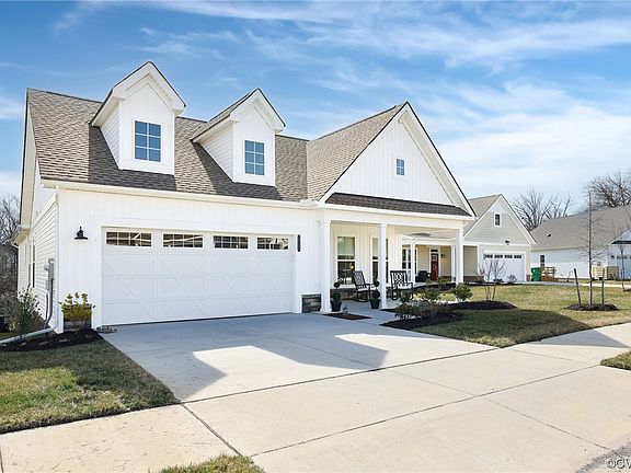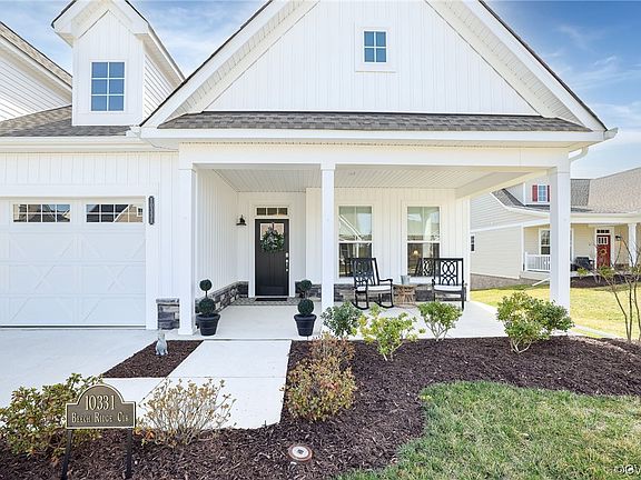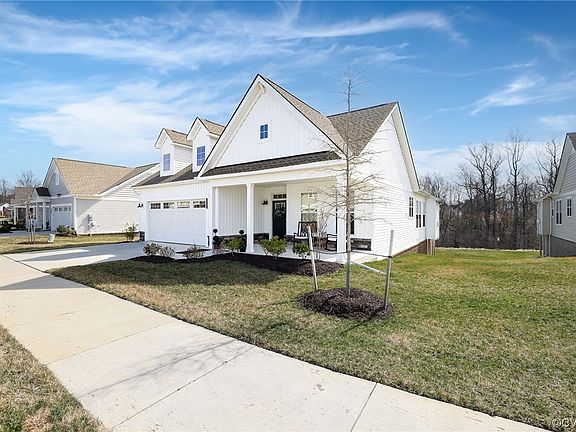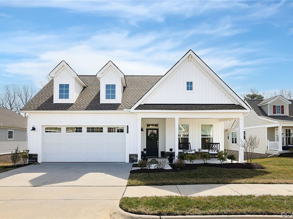Join this award-winning 55+ community! The incredible Winchester Model is a detached Carriage Home with Finished living space of 2,896 Sq ft including the finished Walk out Basement-Plus an unfinished Third Bedroom Area and Walk in Basement storage. You will love the Open and Bright Feel of the main level with abundant windows-from the front foyer/Office area to the Chef's Kitchen featuring KitchenAid Gas Cook Top, Double Convection Ovens all adjoining the Dining Area and the Great Room with Gas Fireplace. The Main Level is completed with the Primary Bedroom with Double Walk in Closets and Spa Bath-Love the Walk in Roman Shower and laundry located off the primary bath and the Second Bedroom with hall full Bath. Do not MISS the Rear Screened in Porch with Views of the Woods and Chickahominy River-wonderful place to relax and enjoy the local songbirds! The Walkout Basement with a 33' Family Room and Wet Bar makes for great entertaining- host a Wine Tasting! Third bedroom located next to Family room is ready to finish & has full bath this is finished and also accessible to the Family Room. Plenty of Flex Space to fit your lifestyle. All of this in a community with Amazing Amenities- 10 Acres of Organic Farming, Farmer's Market, New Beautiful Clubhouse, Walk in Pool, Fitness Center and miles of Walking trails around the Lake! This is the home you have been waiting for in this wonderful Active Adult Agri-community!