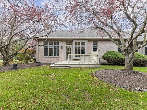 This beautiful and spacious ranch-style townhome in White Oak Estates offers a blend of comfort, style, and elegant design throughout. The primary ensuite serves as a true retreat, featuring jet tub, separate shower, double vanity, generous walk-in closet with wire shelving and large linen closet for exceptional storage. Spacious second bedroom features ceiling fan and corner windows. Hand-scraped hardwood floors flow through the main living areas, complemented by durable ceramic tile in the kitchen, bathrooms, and laundry room. Situated on a desirable corner lot, the property is surrounded by mature landscaping that provides both charm and privacy all while enjoying dinner or just relaxing on your deck. Fully applianced kitchen feature Corian counters and tasteful lighting including natural light (skylight) for preparing meals or entertaining. Laundry room features extra cabinets and utility tub. A well-lit full finished basement offers extra storage or vision for your next project. With quality finishes and a warm, inviting layout, this townhome blends comfort, convenience, and charm in every detail. Minutes from the hospital and medical facilities, shopping, great parks and restaurants...providing peace of mind and entertainment.