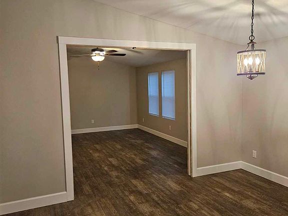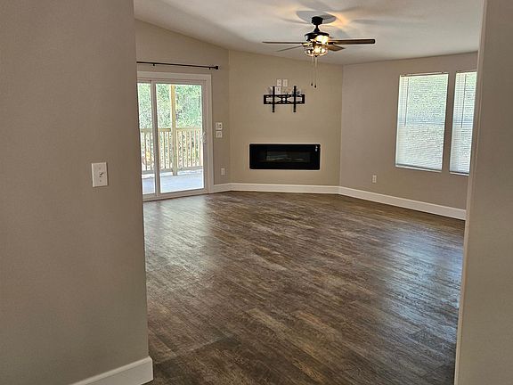 This beautiful and entirely renovated mobile home sits on an acre of land. Come relax on the covered porch and enjoy the wooded property. The kitchen has a large island/table and is open to the family room which has an electric fireplace and mount on the wall ready for your TV. There is a dining room and a second living space that can be used for a movie room, formal living room, or an office. Every bedroom, both living rooms and the porch have upgraded ceiling fans. The utility room has a walk-in pantry and washer/dryer hook ups. The main bedroom has attached bathroom with double vanity, large shower, very large walk-in closet, and linen closet. The secondary bedrooms also have walk-in closets. First month's rent and security deposit required. Tenant is responsible for all utilities except water. No smoking of any kind allowed.