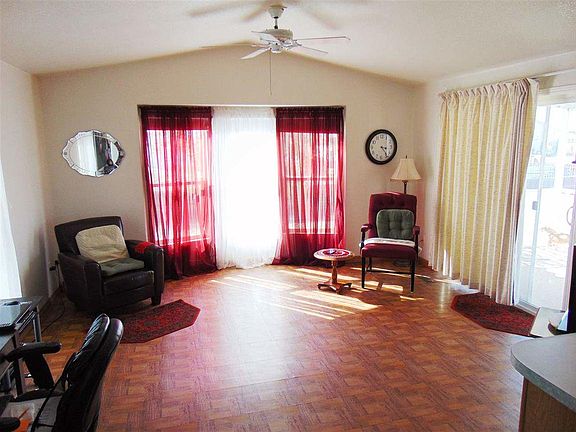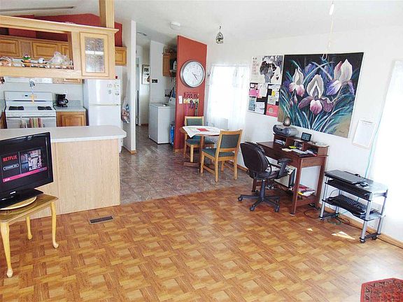 So many Great Features to this 16x44 (704 Sq Ft) One Bedroom One Bathroom Year 2000 Single wide with a Very Nice Spacious Kitchen, Vaulted Ceilings with Open Floor Plan, Laminate Flooring, Natural Gas Stove & Water Heater, New Heat Pump, Solar Lease with Low Low Payments, Large Shed with Window Air that could be Guest quarters, 220 for RV Hook Up with Water & Dump, Shaded Patio & Fully Fenced & Gated!