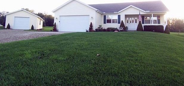 One owner home meticulously maintained with vaulted ceilings, hardwood floors,country kitchen, fireplace, attached 2 car garage and detached 1 car garage, hot tub, walk out lower level. All this and great views!