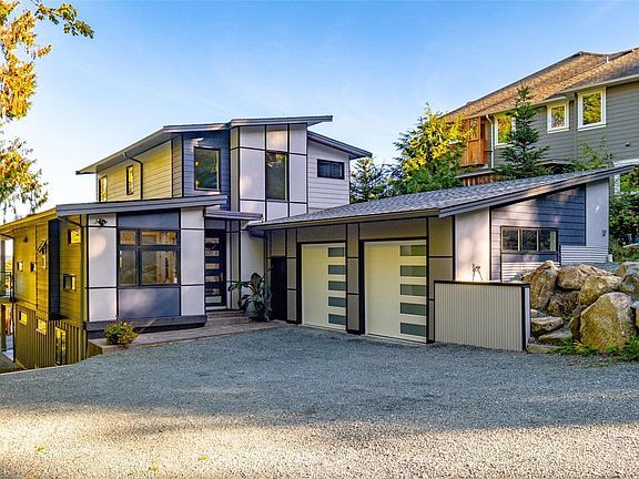 Created to celebrate life’s best moments, this 2023 custom home captures sweeping ocean views and peaceful forest beauty. With over 4,300 sq. ft., it's perfectly positioned near Chemainus' heart, close to seaside trails, shops, theatre, and schools. Designed for elegance, this home features four bedrooms, five bathrooms, a gym, office, and generous outdoor living space. The chef's kitchen with a large quartz island flows into an open-concept living area with a striking fireplace and a wall of windows framing the view. Enjoy morning coffee on the covered deck or retreat to the primary suite with a private balcony. Upstairs, a lounge with a wet bar opens to an entertainer's sundeck. The walk-out lower level includes a rec room, bedrooms, a gym, and a bar - ideal for guests. Surrounded by landscaped gardens and a gazebo, this home embodies coastal luxury and tranquillity.
