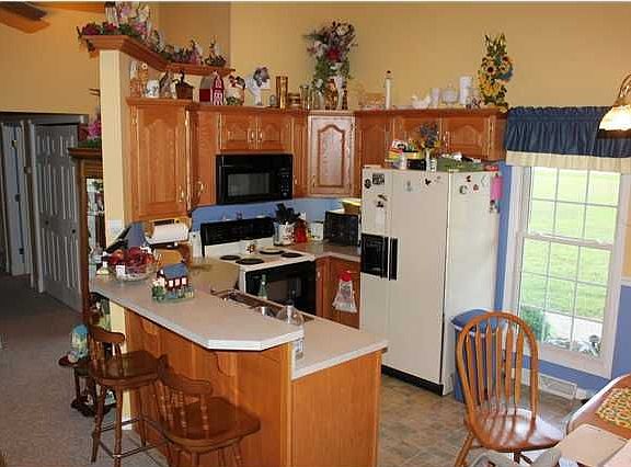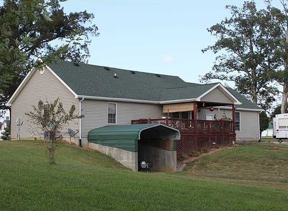 Home has 3 bedrooms, 2 baths,eat in kitchen with family room with gas fireplace and built in tv center to remain. Owner has large level lot with huge shade trees and great garden spot. Home has 2 car attached garage and storage building to remain. Owner has large covered porch on the back of home. Basement is walkout and is unfinished and same size as upstairs. Can finish it or use it for storage. Home is only ten miles from leitchfield and approx. 5 miles from Rough River lodge and golf course. Road maintainance agreement homeowner must pay for portion of gravel for road.