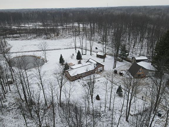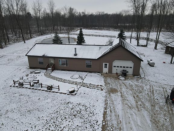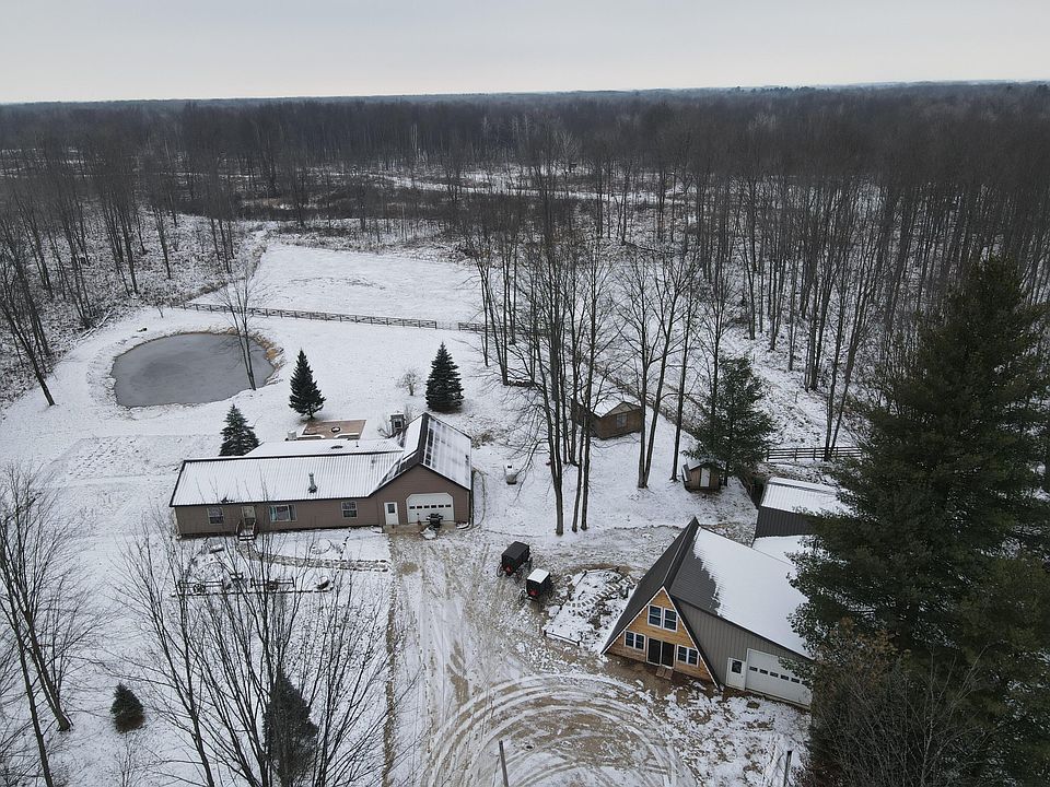 If viewing on Zillow or Realtor, dial listing agent directly for more info. Located in Isabella County about half way between Clare and Coleman on 40 ac! This 3 bed 2 bath home has been very well kept and features in floor heat, solar power and new finished attached garage with in floor heat. Along with this comes a newly renovated one bed one bath A Frame guest house. Attached to this there is a finished shop and horse barn. Behind the barn is a fenced pasture area and a pond. The remainder of the property is wooded with a food plot in the middle. *Maps contained on our sites are there to simply depict the over all layout or shape of a given property and show what it looks like from an aerial view. These maps are neither a legally recorded map, or any type of a legal survey and should never be used as one
