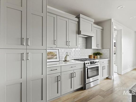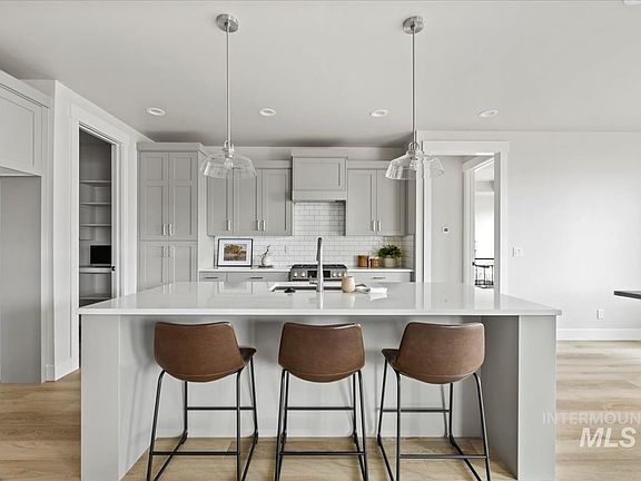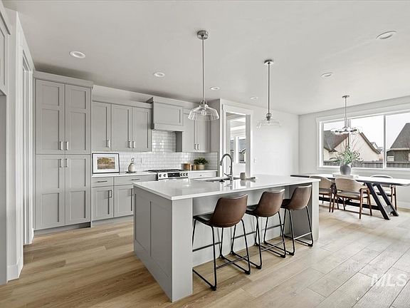 Welcome to this beautiful Lindsay floor plan in Arbor, Nampa! This single-level home features a thoughtful split-bedroom layout with three spacious bedrooms, two baths, and a welcoming covered patio perfect for relaxing outdoors. Inside, the light grey and white kitchen palette exudes a timeless elegance, complemented by ample natural light pouring through the large windows. The centerpiece of the great room is a stunning brick fireplace, creating a cozy focal point for gatherings. Designed with modern living in mind, this home offers both comfort and style in an open and inviting layout.