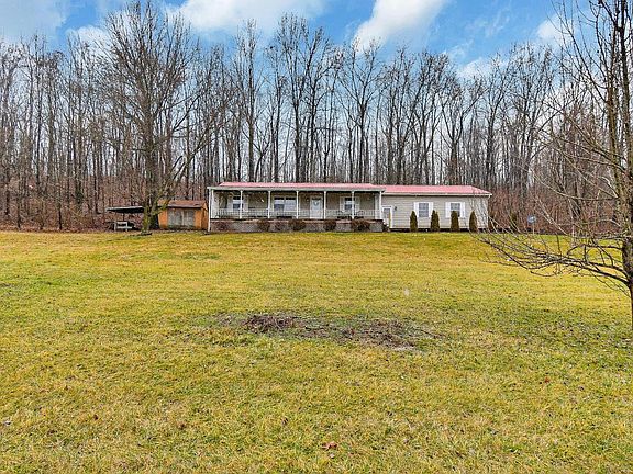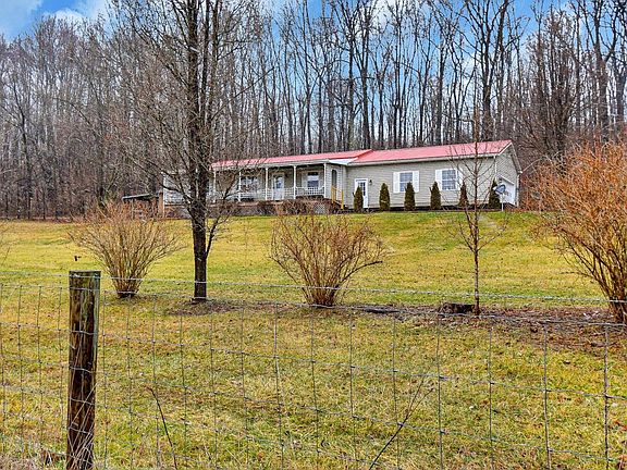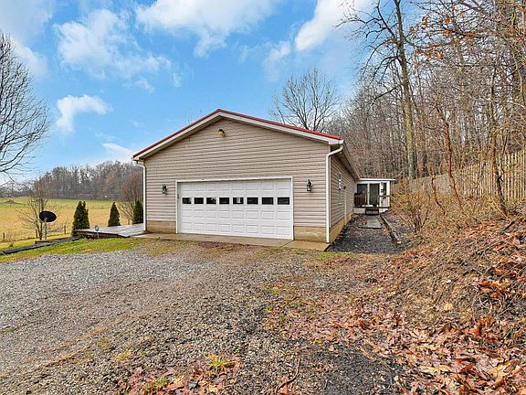 Don't miss this immaculate ranch w/acreage, woods, 3 acres of fenced pasture, pole/barn, w/water, electric, and office. Home has a full front porch for sitting enjoy the pasture. Or a four season room, heated w/ air conditioning w/ 9x14 porch off back for grilling. Metal roof, house and barn, 2015. Overhead lighting in bedrooms with ceiling fans. Whole house fan. Full basement with 2 extra rows of block. Egress/regress basement stairs basement up/down to oversized 2 car garage, with overhead storage, pull down stairs, and work bench area. Three full updated baths. Steel doors with keypad access, Security system.