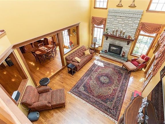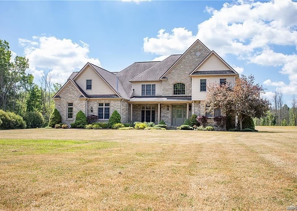 Exceptional custom built 4,237 sqft home on 3.5 acres of privacy. Quality features including dramatic 2-story great room. First floor master en suite with fireplace. Pleasant office or den. Guest wing with private entrance, full bath, and rec room. 3.5 car garage. Outdoor kitchen, beauty pool, & hot tub. Modern maintenance-free 5,000+ sqft heated outbuilding. 3-phase electric, water. Perfect for car enthusiast or hobbiest. Outstanding Clarence School-Clarence has one of the lowest tax rates in WNY.