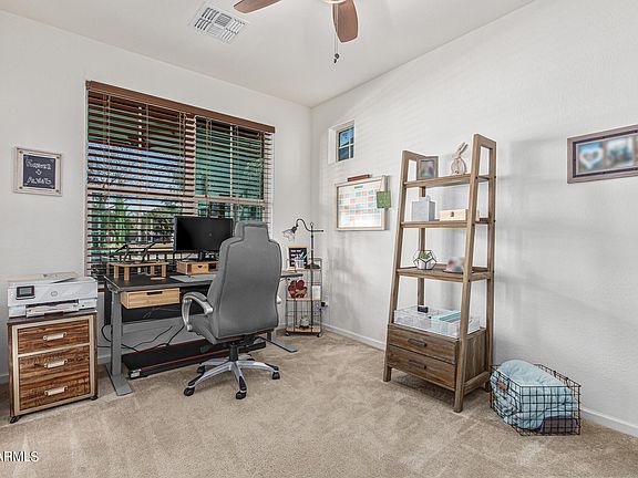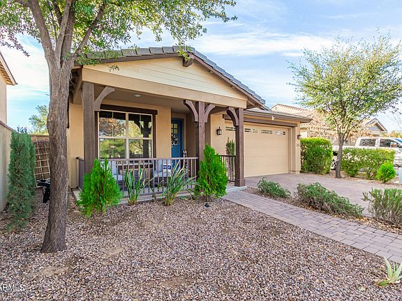 Huge Price Drop!! Welcome to Eastmark, where lush green surroundings & a charming front porch create a perfect setting for your mornings. Inside, discover a well-appointed Office/Den with a double door entry, a stylish Kitchen featuring Stainless Steel appliances, Granite counters & updated freshly painted grey cabinets that seamlessly extend into the hall & bathrooms. Tile floors in kitchen, entry, hall, laundry & baths. Master bedroom boasts a walk-in closet & sliding door to Patio. Master bath offers a double vanity, step-in shower & separate commode. Family room leads to the meticulously planned back yard with Stone Pavers at patio & walkways, Synthetic grass for easy care & ambient lighting for enchanting evenings. SELLER WILL CONTRIBUTE $5000,TO BUYER COSTS Click on More Numerous upgrades: