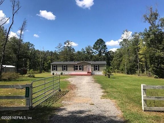 Escape to the quiet of the country with this 2020 Live Oak Homes mobile home, perfectly tucked away on a fully fenced and gated 1.14-acre lot. Peaceful and secluded, yet just a short drive to St. Augustine, Palm Coast, and I-95, this property offers the best of both worlds—privacy and convenience.