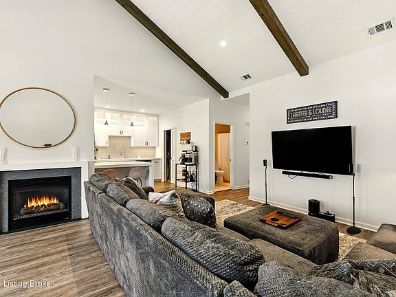 MOTIVATED SELLER! Fully remodeled 2BR, 2BA condo with designer VAULTED ceilings with EXPOSED WOOD beams, a cozy gas FIREPLACE with CUSTOM mantel, LUXURY vinyl plank floors, DESIGNER fixtures, fully remodeled bathrooms, and CUSTOM CRAFTSMANSHIP throughout. The MASTER CHEF'S kitchen features QUARTZ countertops, CUSTOM cabinetry, and ELEGANT black hardware. Primary suite, courtyard view, deck access, and DESIGNER bath with tile walls/floors, and FLOATING shelves with ACCENT WALL. Newer water heater and HVAC. Freshly built DECK overlooks landscaped courtyard. The maintenance fee covers the general insurance over the common areas of the building, water, landscaping, trash and snow removal. Assigned parking #27 + guest spaces. Minutes to Hurstbourne & Shelbyville Rd shops/dining.