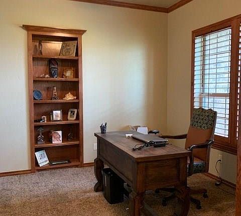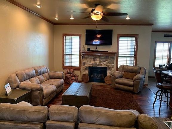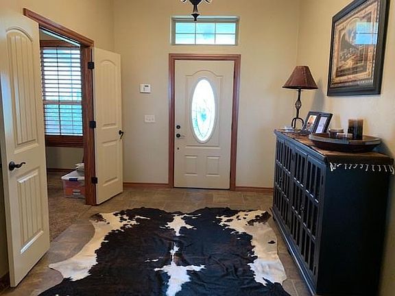 Beautiful home located in the Copper Ridge Addition. This beautiful home sits on 5.23 acres mol. There are 4 bedrooms and 4 bathrooms including the large master suite that includes a wirlpool tub, walk in shower, large vanity and a giant walk in closet. There is an office, 2 large living areas one with a gas fireplace. Very large open kitchen with pantry, lots of storage and counter space, granite counter tops, a wrap around breakfast bar, a nice dining room and a wet bar. There is a built in safe room inside the house as well. 40X60 Barn insulated and heated wired for 220, built onto it is a 20X40 Lean-too covered and makes a great man cave. Wrought iron fenced back yard and a white vinyl fence around the whole property. A MUST SEE.