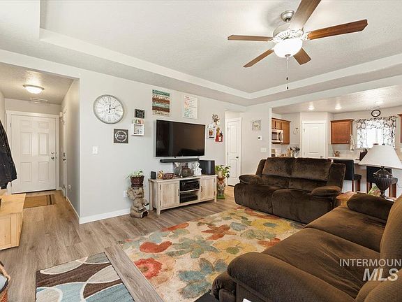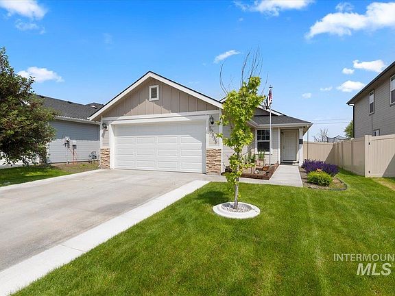This charming single-story home offers 1,466 square feet of comfortable living space, w/ 3 beds & 2 baths. The modern upgrades and attention to detail throughout the home make it truly special. Inside, you'll be greeted by sleek gray and white wood floors that create a contemporary ambiance. The open-concept living area seamlessly connects the living room, dining area, and kitchen, making it perfect for entertaining. The kitchen features stylish cabinetry, modern appliances, and ample counter space. A cozy breakfast nook bathed in natural light provides a serene spot for your morning coffee. The master bedroom includes a spacious closet and an en-suite bathroom. Outside, the backyard is a true oasis. The 12x10 Trex patio is ideal for outdoor entertaining, and there's a shed on a foundation for convenient storage. The front and back yards have recently been upgraded with beautiful landscaping. Additional features include epoxy floors in garage, and water purification system.