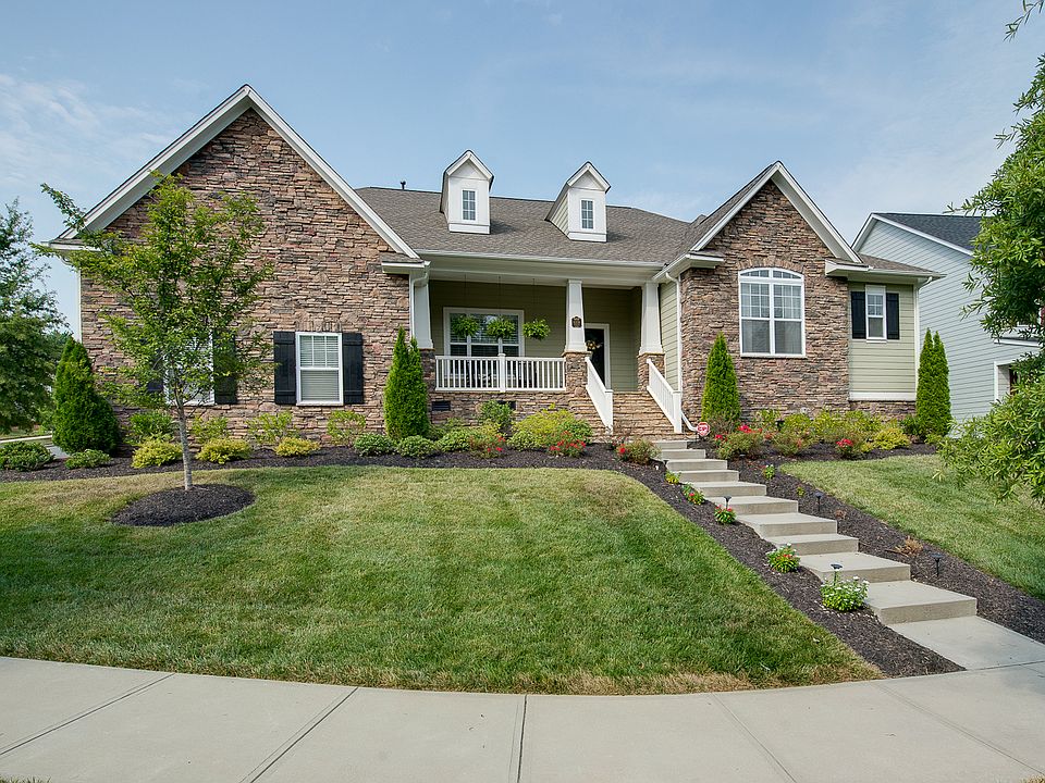 Stunning 1.5 story Ranch style home in sought after Vermillion. Features include large, open floor plan with hardwoods throughout main level. Gourmet kitchen with SS appliances, granite, double ovens and marble backsplash. Kitchen/living area open to large back porch, perfect for entertaining. Upstairs bonus room is sized for a crowd. Walk-in attic located off bonus room. large corner lot facing common green space. Walking distance to pool, playground, restaurant.