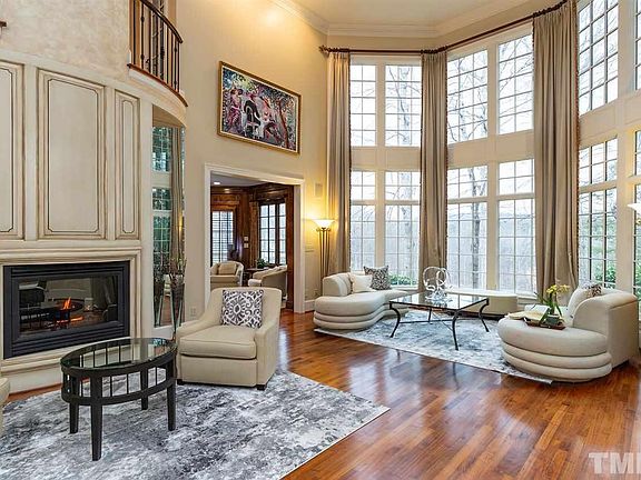 GOLF COURSE VIEWS. Picture yourself approaching this impressive property and leaving all the challenges of the world behind.Quality built w/brick, stone and spectacular finishes. Great Room w/floor to ceiling windows to embrace the sunlight.Majestic architectural details. MBR and Study on Main. Screened porch (upper) to toast incredible sun sets/phenomenal views! Dumb waiter to carry refreshments.All BRs en suite. THREE car garage. Storage.3-HVAC. Close to UNC,RTP,RDU,Duke. Golf Membership available.