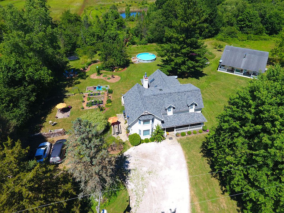 Welcome to Red Bridge Farm. Over 21 acres of country perfection with two, 4 bedroom 2 bath homes. Ideal for a large extended family, homesteader, farmer, hunter and investor. Beautiful main, 2800 square-foot farmhouse has wraparound porches. Foyer opens to a sunny kitchen dining room combo. Kitchen boasts a large island, walk-in pantry and wood-burning stove. Kitchen door conveniently opens to side patio, perfect for barbecues, family gatherings and that morning cup of coffee. Family room has vaulted pine ceiling, two skylights and wood burning fireplace. Full bathroom with a l garden tub and bedroom/office completes the first floor. Upstairs main bedroom has two closets + walk-in closet, plus additional 2 bedrooms and a full bathroom with convenient second floor washer and dryer. Guest home/In laws quarters offers 3/4 bedrooms/office and 2 full bathrooms. The main floor has a beautiful kitchen, living room and dining room open concept and primary bedroom. This property has it all - farmland, mature trees with trails, stocked pond, creek, raised garden beds, fruit trees, grapevines, perennial gardens and manicured landscaping. Steel 25x58 garage with electric and cement floor is perfect for workshop, farm equipment and all your toys. This home is located only minutes from I-69 in the award winning Yale School District. It private and serene but just 25 minutes away from the aqua blue water of Lake Huron and all your shopping needs. You will fall in love with this property! Come out and see the red bridge.
