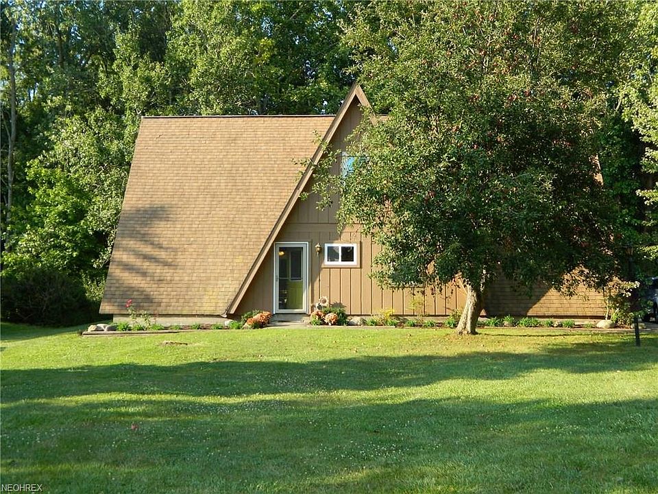 Looking for something light, bright and open? This surprisingly spacious, unique A-Frame home combines rustic touches and modern updates - all with loads of charm and character! A two story great room has a wall of windows that let the natural light in. The updated eat-in kitchen has lots of cabinet and granite counter space, updated flooring and appliances and connects to a cozy family room with gas fireplace. Two good sized bedrooms are on the first floor along with an updated full bath. Upstairs you'll find an awesome master suite with adjacent loft / office area overlooking the great room. Lots of closet space, private full bath and large windows overlooking the private back yard. Located at the end of a culdesac and set back from the road on a wooded lot, this charming home has plenty of closet and storage space, attached oversized 2 car garage, patio, built-in fire pit, updated landscaping and many updates throughout. All appliances stay! Priced right in a popular recreation / boating community. Don't miss!