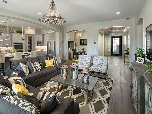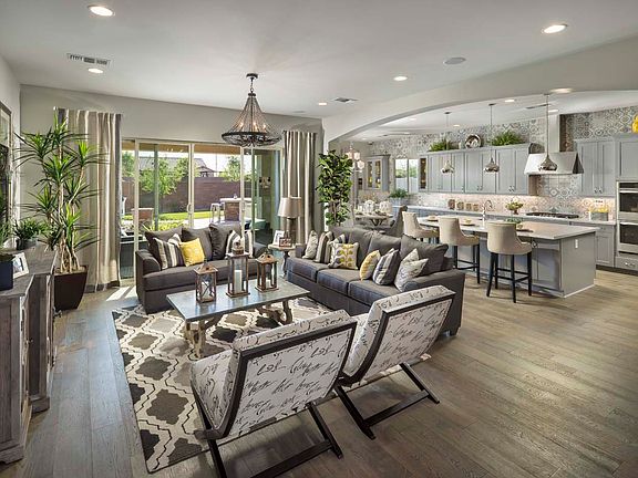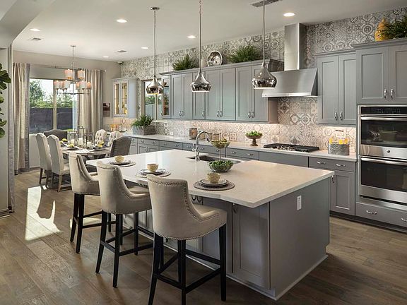 Beautiful new Parker plan at Aileron Square in Eastmark featuring a gourmet kitchen with stainless steel appliances, designer kitchen backsplash, upgraded cabinets, quartz kitchen countertops, extended upper and base cabinets in kitchen nook, box window at master bedroom, two-tone interior paint, pavers at driveway & walkway, upgraded tile flooring and more. Purchase this home by September 15, 2017 and receive a G.E. stainless steel counter depth refrigerator and G.E. front load washer & dryer.*