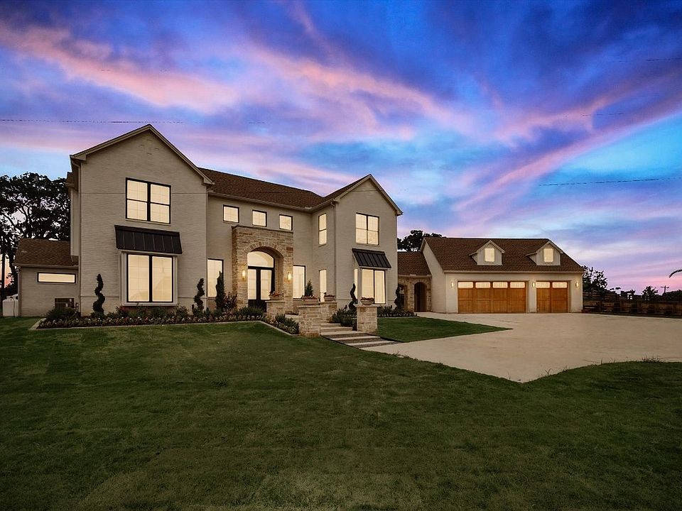 Welcome to your dream home in Argyle ISD, a luxury, new construction on 1.25 acres. This stunning home showcases a perfect balance of traditional and contemporary design, with exquisite finishes and meticulous attention to detail. The open floor plan connects the main living areas, creating a smooth transition and an ideal space for both relaxation and entertainment. The gourmet kitchen is a true chef's delight, featuring a Jenn Air 48” gas range, refrigerator, and an exotic quartzite full slab on counters and backsplash. The kitchen has a full prep, walk-in pantry with a sink. The master suite offers a lavish bathroom and a spacious walk-in closet. Highlights include 23’ ceilings, 15’ iron double entry door, designer lighting, white oak wood floors, a dedicated home office and media room. The outdoor living area has a covered patio and stone fireplace with room to build your dream pool and oasis. Don't miss this opportunity to own this exceptional home with breathtaking views.
