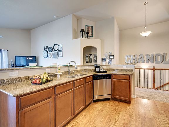 Welcome home! This beautiful 5 bedroom 3 bathroom home has plenty of space for everyone with 3 bedrooms on the main level and 2 bedrooms in the fully finished garden level basement. The kitchen has an open concept with large granite island with hi top seating, white 42in cabinets, stainless steel appliances, granite countertops, pantry and a beautiful backsplash. The open master suite boasts vaulted ceilings and an ensuite bath including a soaking tub, spa shower, double vanity and large walk in closet. Laundry is conveniently located on main floor. Everyone will love this basement for entertaining, sitting area, bar area, gaming area, and a full bathroom. Another great spot for entertaining is the large private backyard with cement patio ready for your BBQ grill! Garage has pegboard, shelving and an exterior door. Home is ready to move in with AC (newer compressor), humidifier, radon mitigation system plus on-q cable box. Fantastic location-- walking distance to Meridian Ranch Elementary and close to Meridian Ranch Rec Center! Please note Meridian Ranch Metro District includes fees for the Rec Center