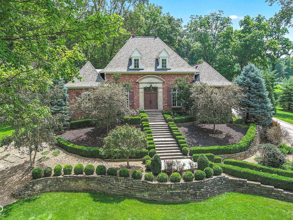 One-of-a-kind true custom French Country home on five and a half acres with plenty of privacy! Nestled in the perfect location only 30+ minutes from downtown Indianapolis or minutes from Columbus, be prepared to be in awe of this stunning all-brick 4-bedroom, 2.5-bath home on a meticulously maintained landscaped estate. This beauty will impress you the minute you turn into the driveway and is designed for entertaining and family interaction. A raised and open entry leads to the formal living room, formal dining room, home office or family room. Talk about a welcoming entry to your home! The custom touches are everywhere you turn and include arched entry doors, hardwood floors, exposed wood beams, an oversized limestone fireplace and a wall of French doors leading to the tiled patio and courtyard with a fountain. The chef's eat-in kitchen boasts upgraded appliances including a gas range/griddle, double ovens, refrigerator, and custom cabinetry in addition to the center island and closet pantry, which leads into the main level laundry room. The secluded primary suite on the main level has vaulted ceilings, a spa bath, and French doors to the courtyard patio and walk-in dressing room. Three additional bedrooms and a huge playroom give you plenty of sleeping areas. The basement is ready for your finishing touches and is a great area for storage. The outdoor spaces with this estate are some of the most impressive! A true French garden area right off the family room, a private hot tub area plus the addition of the exterior patio with a pergola, and a large brick fireplace create an ideal entertaining space and a perfect relaxation area to end the day. For those who love to be one with nature, you will find an additional metal-covered space for picnics and or a fire pit which would make a great camp-feel area for nature lovers. With too many features to list, this home is a must-see to truly appreciate. Don't wait, call for your private viewing today