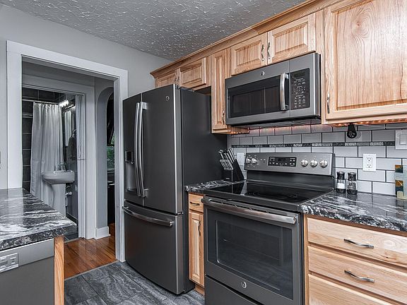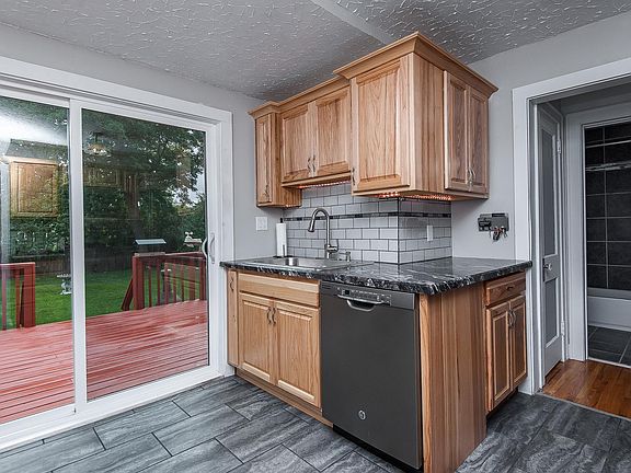 This adorable 2 bedroom, 2 bath home is located within walking distance to downtown, has a fenced yard and is updated for your enjoyment! New eat-in kitchen includes hickory cabinets, high-def counters, tile backsplash, luxury vinyl tile floors, slate appliances, and sliding door to deck. Living room has beautifully refinished hardwoods and lots of natural light. Second floor offers a spacious bedroom with large closet. The lower level has a second bedroom with new carpet, a bath with shower, and plenty of great storage space. This house is turn-key and cute as can be! Newer roof and furnace (6 years). Don't miss out on the lowest house payment of your life!