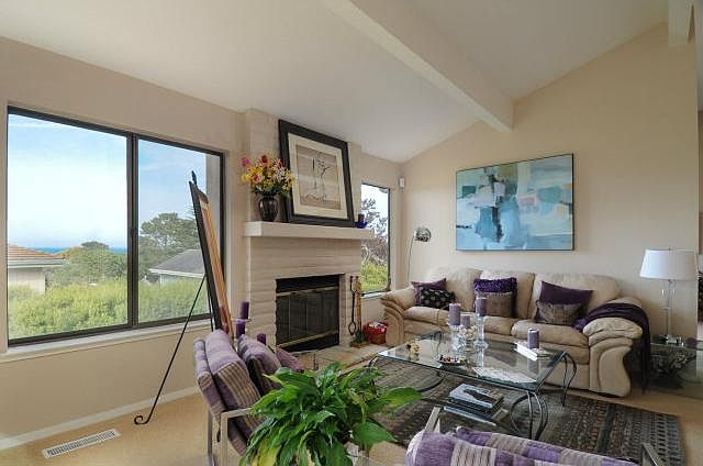 Contemporary bayview home conveniently located in the coveted Beach Tract of Pacific Grove, just a short stroll to the beach, golf course & downtonwn. This updated 3br/2.5ba home w/vaulted ceilings has main living space on the upper level to capture everchanging vistas of the bay & mstr suite & 2 more bedrooms & guest bath on the lower level. Perfect investment, getaway or full time residence