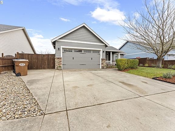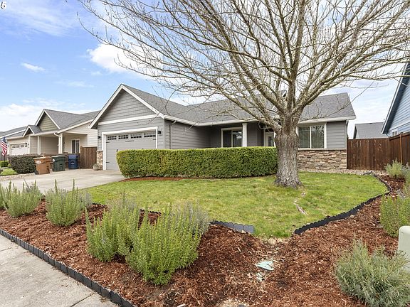 Located in a desirable Junction City neighborhood, this well-maintained 2007-built home offers efficiency and comfort with a single-level floor plan. Vaulted ceilings and a cozy fireplace enhance the open living space, which features wood floors and a pass-through to the kitchen. The flexible layout includes 4 bedrooms (or 3 plus a den/office), while the primary suite boasts a large walk-in closet, ensuite bath with double sinks, and private patio access.The beautifully landscaped yard includes new river rock, refreshed patio stonework, rosemary and lavender in the front, a rose garden in the sideyard, and 100+ planted bulbs for vibrant spring blooms. A hot tub hookup and updated sprinklers add to the appeal. Additional highlights include RV parking with an on-site RV dump.This home is truly a must-see!