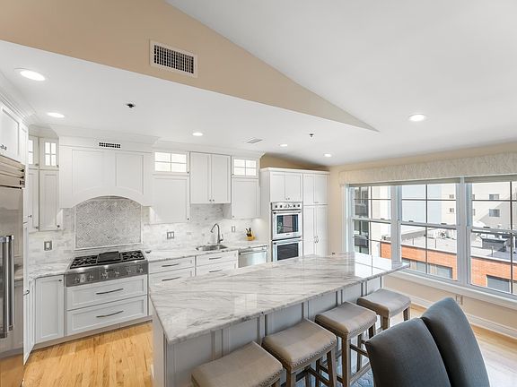 You can not believe this is in Hoboken! Boasting the true definition of "open floor plan" this enormous penthouse duplex allows you to live in a suburban sized space without compromising city lifestyle. The building is located on a beautiful cobblestone street and has a meticulously landscaped courtyard. As you swing open the door to your new home, your breath is taken away by the sprawling great room that covers the entire top floor of the condominium. Nearly the whole northern wall is comprised of new sound proof floor to ceiling windows that welcome light into the space all day and offer partial NYC skyline views. The incredible natural light dances off the soaring 15-foot pitched ceiling. You feel a sense of calmness as your eyes pan the vast space just trying to take it all in. Every construction detail has been meticulously planned throughout this beautiful home and it shows! You begin to envision countless gatherings and holidays unfolding in the future. The kitchen dazzles even the most discerning chefs with a high-end appliance package including a Thermador double oven and a six-burner gas range, custom cabinetry with soft close doors and many pull outs, marble tile backsplash and natural quartzite countertops. You truly feel like you are in a house as you stand behind the center island looking into the massive dining space open to the even larger living area. Get ready to enjoy the home's technology which includes a built-in Bose sound system, remote-control mechanical blinds, energy-efficient heating and cooling, and Lutron lighting (with dimming feature). When you are finished enjoying the top floor, walk down an elegant full size staircase to three oversized bedrooms, plus a den/nursery/home office. Each room has thick solid-wood doors for fantastic privacy as well as raised opulent molding. The primary suite is a thing of dreams! Big enough for a king bed with a sitting area, this sanctuary boasts an en-suite bathroom and an estate-sized walk-in closet! Bigger than many city bedrooms, the closet is dripping with style and includes but is not limited to French doors and built-in cabinetry, including a vanity, full size washer/dryer, pull out tie and belt racks and even more hidden storage! Smart storage options can be found in every nook of the home such as a storage area under the stairs and a walk in coat closet big enough for a stroller. The den-like space (currently being used as a nursery) has even more storage with a secret hidden walk-in closet. With a new HVAC compressor, two parking spaces in the attached covered garage, NYC transportation on the corner, you truly want for nothing. Located one block from beautiful Columbus Park and just five blocks away from Washington street. Don't miss this one-of-a-kind property you have to experience in person to believe!