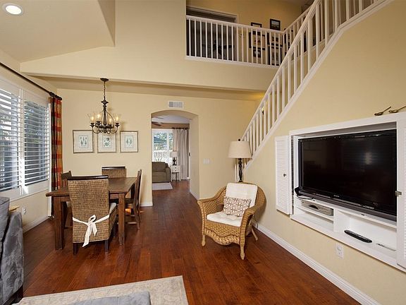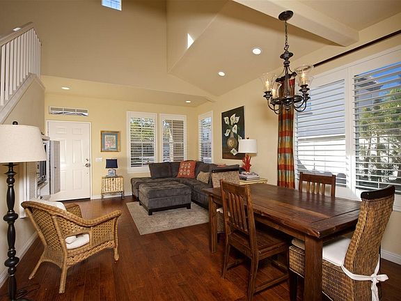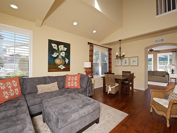 This 3 BR, 2 1/2 bath house is located on what may be the cutest, safest, kid-friendly street and community in San Diego County. All front yard landscaping is maintained by the Cambria HOA so the entire neighborhood streetscape is impeccable. Large backyard with fantastic view of the hills in the distance. Literally a three-block walk down the neighborhood pathway to the Target shopping center and restaurants located at El Camino Real and Encinitas Boulevard. The trail head into the Encinitas Ranch Preserve starts right across the street. The neighbors gather together every year for a Halloween parade, 4th of July parade, Memorial Day party and Christmas party. You can't beat the charm of this little community. The house has been maintained with TLC. Our daughter lives just down the street so we are looking for responsible renters who will take care of the home and be good neighbors. This is a very sought after community. Houses that go up for sale on the view side of the street, like this one, do not last on the market for more than a couple of weeks. Rent is $3,775/month. One month rent security deposit. Available immediately. Pictures show furnishings, but house will be rented unfurnished. No smoking. Tenant responsible for all utilities and trash pick up. Unfurnished.