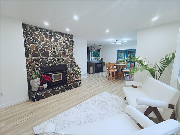 Move Right into this fully renovated 4 bed 2 bath home on a flat & sunny .77 acre corner lot! Private & peaceful yet close to everything! 2100+ sq. ft living space! Completely renovated in the past 4 years to a high standard with energy efficient heat pump, hot water tank, new electrical wiring & new plumbing. New windows & flooring throughout. New gutters, downspouts & fascia. 3 bedrooms on main floor. Open plan high end kitchen with quartz countertops. Dining & living areas with wood stove & stone fireplace. French doors lead to covered deck with southern exposure. Lower level has large family room with wood stove insert , huge bedroom, flex office space, new full bath, storage space & laundry/mud room. Portion of large backyard is currently being used as a small hobby farm. Large workshop, barn & chicken coop, all with power. Two wells @ 12GPM. Fully fenced, lots of parking for boats/ RV. Close to recreation, & amenities in Mill Bay / Duncan. Lots of school choices at all levels!
