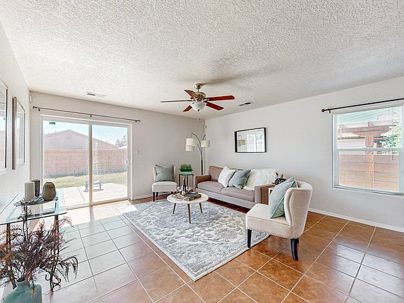 Discover your perfect haven in this charming Rio Rancho residence! This delightful home boasts four cozy bedrooms offering plenty of space for family and friends. The generous living room invites relaxation, while the spacious kitchen with dining area and pantry will inspire your inner chef. Retreat to the primary bedroom, featuring a walk-in closet and custom-tiled walk-in shower that'll make you feel like royalty. Light and bright throughout, this home radiates warmth and comfort. Step outside to find a spacious backyard, perfect for weekend barbecues or stargazing nights. With nearby amenities, this property offers the ideal blend of comfort and convenience. Don't miss your chance to make this house your home sweet home!