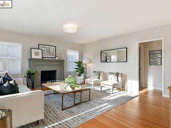 Lovely Bella Vista home with good looks, great location and a sweet yard. Landscaped front yard offers a handsome street presence. Inside, an airy, open living room with oversized window, a brick fireplace and warm hardwood floors. The kitchen has classic tile, period fixtures and butcher block countertops. The dining room is bright. By the kitchen are stairs leading down to a bonus area that could be ideal as a family room or guest accommodations. Downstairs space has a large laundry room that includes a laundry sink and a toilet (potential for half bath?), and a door to the side yard. Rare two-car garage with storage. In the back, two bedrooms have a nicely preserved vintage-style bathroom. The bedrooms both have views of the sizable, tree-filled backyard, one of the rooms has a back door that opens to the garden. The yard's upper level has an open patio - the perfect setup and large, raised, irrigated beds. Other leafy trees provide plenty of shade.