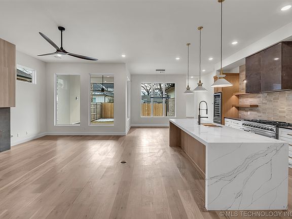 *Introducing the Newest Creation from One of Tulsa's Premier Midtown Builders! This stunning High-end New Construction showcases Modern and Elegant design. The home is truly remarkable from the moment you step inside. The expansive floor plan and outdoor living spaces create the perfect setting for entertaining guests. The striking white oak hardwood flooring adds an air of sophistication to the space. The Kitchen is a chef's dream, with a beautiful quartz waterfall island, 8-burner gas stove, double ovens, and an oversized beverage fridge. The Primary Bedroom is a tranquil retreat with floating his and her vanities, a freestanding soaking bathtub, walk-in shower, and a large walk-in closet with custom built-ins. The main level also features a Bedroom with an Ensuite Bathroom and a dedicated Office or flex space. Upstairs, you'll find a Media Room or Game Room and 3-Spacious Bedrooms, each with its own Ensuite Bathroom and walk-in closet. This Custom luxury masterpiece is meticulously designed, and every inch of space is maximized with high-end finishes throughout. The home is located near all of your favorite Midtown Tulsa hotspots. You can walk to your favorite Shops, Restaurants, Riverside Trails, and Gathering Place Park. Don't miss out! Book your exclusive viewing appointment today! *SB