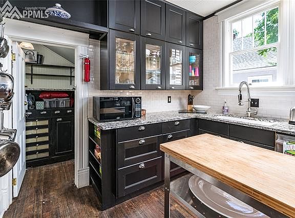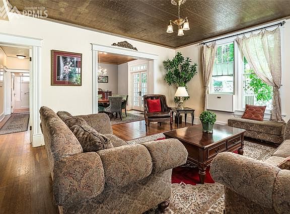 Incredibly charming, meticulously maintained, downtown turn of the century Victorian on 0.27+ acre lot w/2-car detached garage & off street parking for 6+ vehicles, incl. RV ~ main level renovated/updated in 2016 ~ 6 bedrooms, 2 living rooms, 2 dining rooms, 2 kitchens, 2 full baths, 2 mud rooms, 2 furnaces (one per floor), 2 water heaters ~ 3 swamp coolers ~ upstairs floor w/separate, private entries & newer carpeting ~ original patina-rich wood flooring & lighting ~ new French doors to private side patio ~ upper stackable washer/dryer w/secondary washer dryer in basement ~ lovely, spacious picture-perfect front porch ~ large, covered outdoor kitchen / covered patio cafe for outdoor entertaining / gatherings ~ beautiful, rear walking garden w/hundreds of bulbs, tulips, iris, muscari, crocus, rose bushes, peonies, lilies, daisies, sedum, wisteria, mums, lilac bushes, fruit trees (apple/cherry/peach/pear) ~ new partial siding 2012, new roof 2012 w/50-year warranty, enclosed 6-person hot tub 2010, new electrical panel 2006, roof above front porch recently upgraded w/new railing & seal ~ all fences recently repaired & painted ~ gutters just cleaned ~ furnaces just serviced ~ separate, gated rear area w/shed and outdoor storage ~ total utilities about $370/month. Please note that main level fire place is non-functional - decorative only. All measurements are approximate. Be sure to click video tour icon ! An absolute Must-See !!