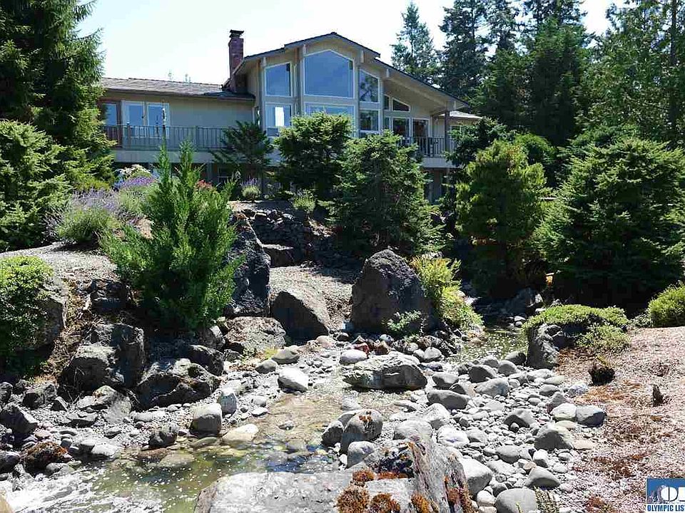 Enjoy the ambience, water views, spaciousness, and comfortable living associated with Sequim's remarkable Bell Hill neighborhood at a very attractive price yet providing privacy and a waterfall and pond system reminiscent of a mountain retreat. This home has 3662sf, 1456sf garage with RV garage. Vaulted ceilings, spacious master en-suite, built-ins, den with private bathroom, daylight basement with great room 2 bedrooms and bath.