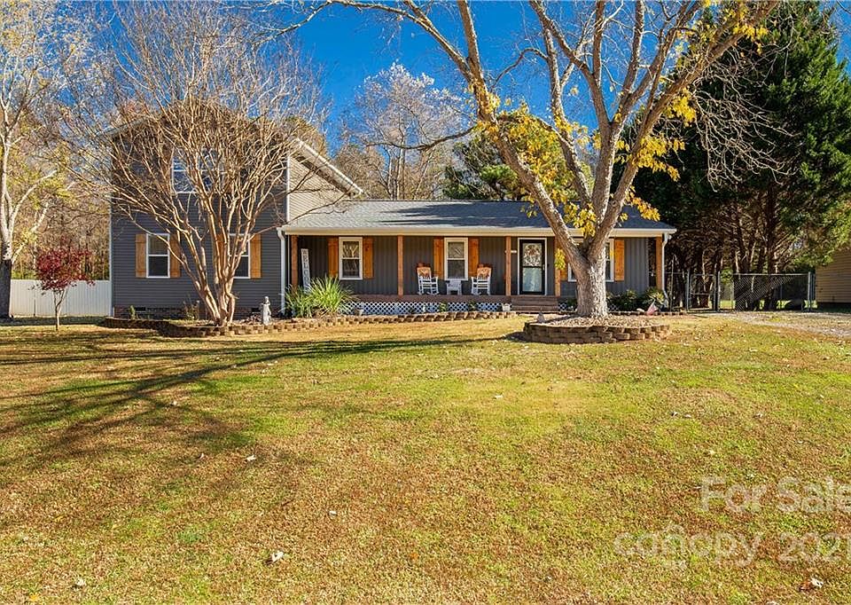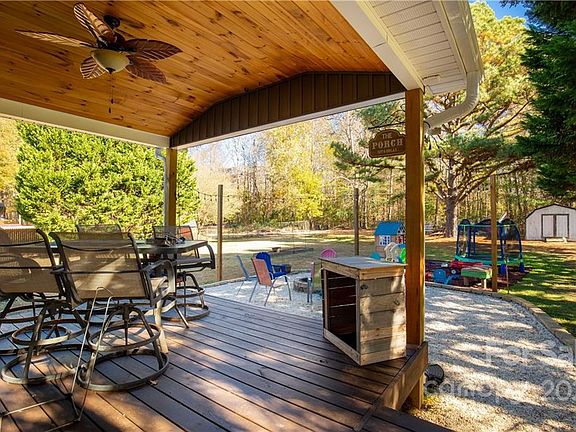 This gorgeous home has been updated with incredible taste! Septic for 3 bedroom, however current owners use 4 bedrooms plus an office! Kitchen designed andremodeled featuring white cabinets and quartz countertops. Kitchen island boasts of wood top and seats 4-has shiplap walls and backsplash along with wood ceiling in eating area. Full bath and laundry room(with cabinets and work sink) on main level. Spacious iving room w/door exiting to covered front porch. Primary bedroom on upper level is private with jetted garden tub separate walk in shower and gorgeous tile! Double vanity! large fenced backyard and covered deck w/wood ceiling and fan. Lower patio area with firepit. Storage shed. Clover School District! No HOA's. As you will see this is fully updated and ready to move in!