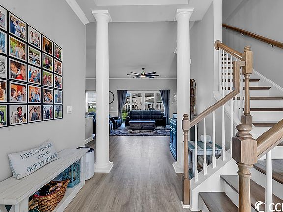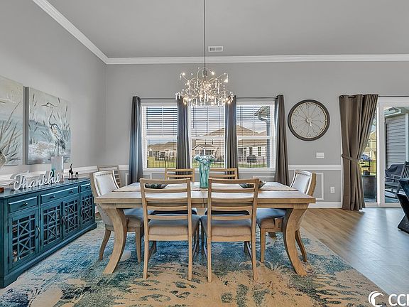 BETTER than NEW home! Owners did ALL the finishing/upgrades you will need! Upgrades include: rain gutters, blinds and window treatments, laminant/tile floors throughout, ENTIRE interior of home professionally painted with Behr paint. Soft close cabinets, granite countertop and back splash added to breakfast nook. Shower heads, lighting fixtures, ceiling fans, convection air fryer oven, Midea dishwasher, box molding in dining room, crown molding, patio extension, fenced back yard, garage workshop, overhead garage storage system. This home offers a very spacious open design perfect for entertaining. Lots of windows and 11’ foot ceilings create an abundance of natural light! The kitchen is open to the dining and family room with a large floating island and stainless appliances. The owner's suite is located on the first floor with tray ceilings. A large en'suite offers a tiled shower. Two additional bedrooms are located on the first floor. The guest suite has an additional bedroom, bath and media room upstairs. Enjoy the summer evenings on the large, covered porch looking out at the pond! This is America's Smart Home! Control the thermostat, front door light and lock, and video doorbell from your smartphone or with voice commands to Alexa. The expansive community clubhouse has a large gathering room with fireplace, fitness center, outdoor verandas, resort style pool, playground area and dog park. Heather Glen is conveniently located just minutes to shopping, dining, golfing and the beach. Schedule your appointment to see this home today and start enjoying all the Coastal Lifestyle has to offer! Note that the square footage is from builder info and is estimated.