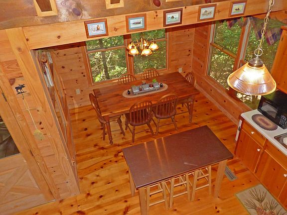 The perfect mountain get-away cabin! Only 0.4 from pavement, PRIVATE Wood Lot, lots of natural light & cover porch for relaxing. 2 BR & 1 Full BA on main level, plus a sleeping loft, spacious Kitchen with a Dining Room Area! Crawl space has finished large party deck for extra space. Well maintained. Excellent location between Blue Ridge and Ellijay. Very private location in friendly community, Seasonal Wooded Mountain View, close to community Lake. Most Furnishings Included with acceptable Offer.