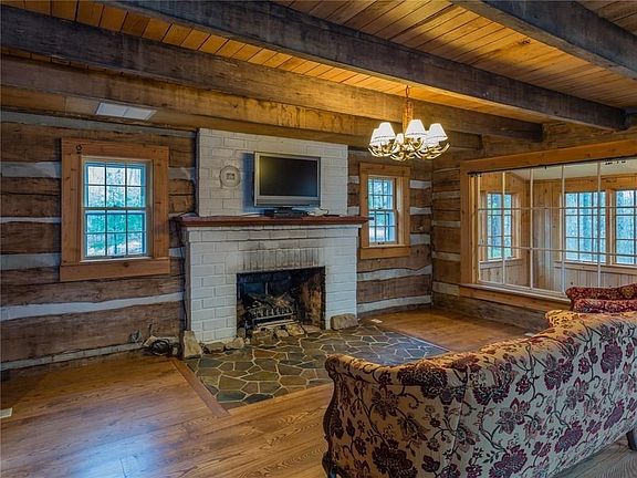 Filmed for HGTV! Brown County Vintage Hand Hewn Log Home on 6 Acres of Elevated Mature Wooded Land w/Pond. Relocated from Atterbury in 1941. Completely Updated & Modernized w/Original Charm. Master Bedroom & Large Loft for Many Beds. All New Plumbing, Elec., HVAC, Kitchen, Flooring & New Addition. 3 Full Updated Baths. Detached Art Studio w/HVAC. Multi Car Detached Barn w/Wood Shop. All Appliances Included w/Repurposed Modernized Early 1900's Stove! Close to State Park!